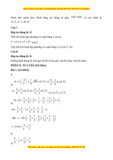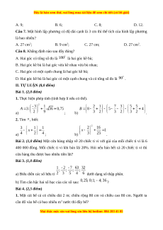 Câu 7. Một hình lập phương có độ dài cạnh là 3 cm thì thể tích của hình lập phương là bao nhiêu? A. 27 cm2; B. 9 cm3; C. 27 cm; D. 27 cm3.