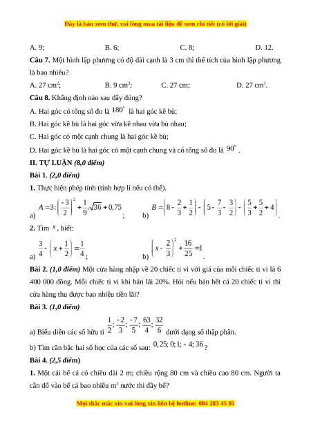 Bài 2. (1,0 điểm) Một cửa hàng nhập về 20 chiếc ti vi với giá của mỗi chiếc ti vi là 6