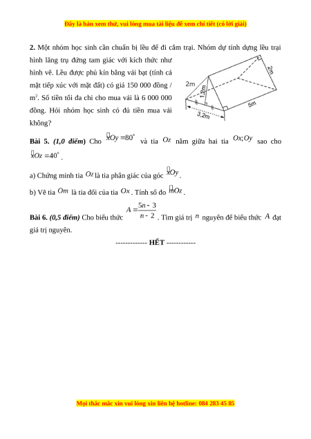 2. Một nhóm học sinh cần chuẩn bị lều để đi cắm trại. Nhóm dự tính dựng lều trại