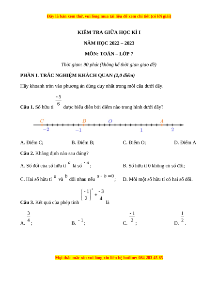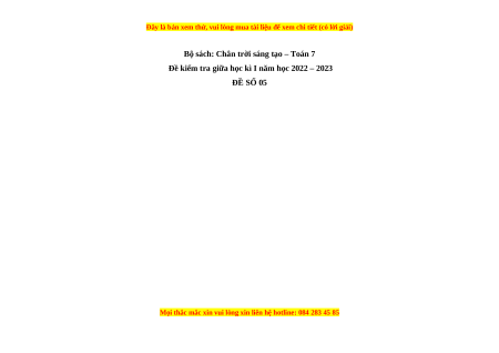 Đề kiểm tra giữa học kì I năm học 2022 – 2023 ĐỀ SỐ 05