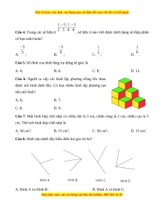 Câu 7. Một hình hộp chữ nhật có chiều dài là 3 cm; chiều rộng là 2 cm; chiều cao là 5