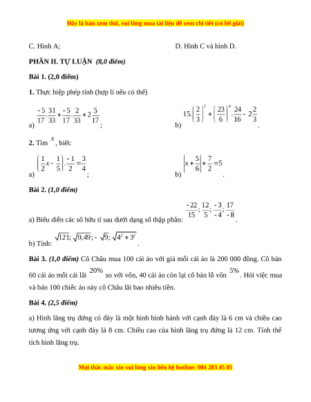PHẦN II. TỰ LUẬN (8,0 điểm) Bài 1. (2,0 điểm)