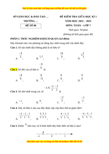NĂM HỌC 2022 – 2023 ĐỀ SỐ 06 MÔN: TOÁN – LỚP 7 Thời gian: 90 phút