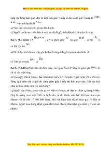 Bài 4. (1,5 điểm) Một khối gỗ hình lăng trụ đứng tứ giác