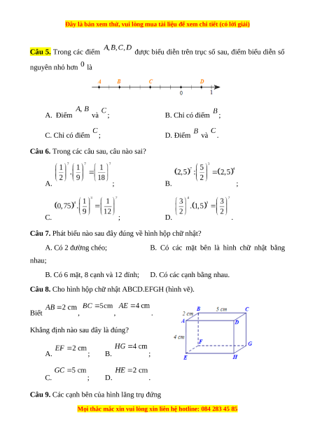 Câu 1. Cho các số sau: . Các số hữu tỉ là A. ; B. ; C. ; D. .