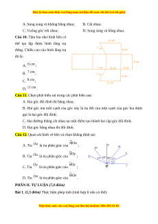Câu 12. Quan sát hình vẽ bên và chọn khẳng định sai: A. Tia là tia phân giác của ; B. Tia là tia phân giác của ; C. Tia là tia phân giác của ; D. Tia là tia phân giác của .