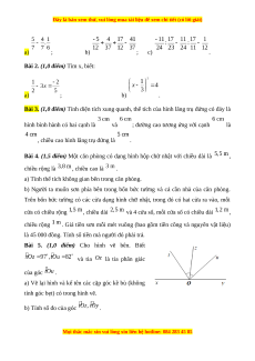 Bài 3. (1,0 điểm) Tính diện tích xung quanh, thể tích của hình lăng trụ đứng có đáy là