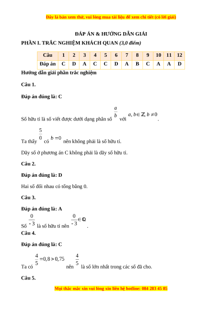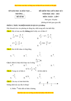 Câu 1. Dãy số nào sau đây không phải là dãy các số hữu tỉ? A. ; B. ; C. ; D. .