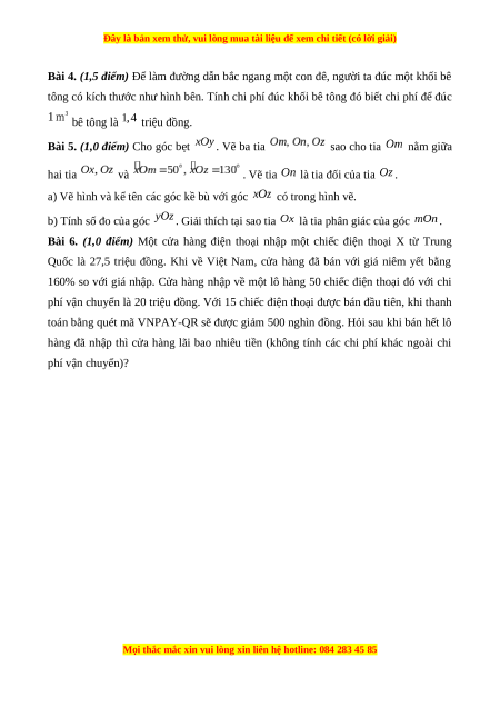 Bài 6. (1,0 điểm) Một cửa hàng điện thoại nhập một chiếc điện thoại X từ Trung