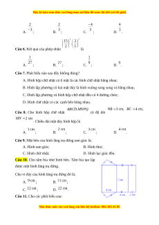 Câu 8. Cho hình hộp chữ nhật có độ dài
