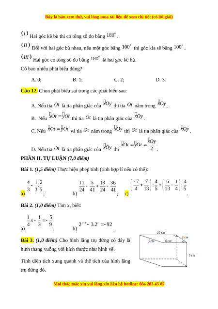 Bài 1. (1,5 điểm) Thực hiện phép tính (tính hợp lí nếu có thể): a) ; b) ; c) .