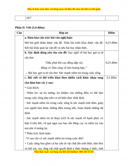 Phần II. Viết (5,0 điểm) Câu Đáp án Điểm
