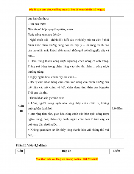 Câu 7 A. Tình yêu thiên nhiên say đắm, nồng nàn của bậc hiền nhân 0,5 điểm
