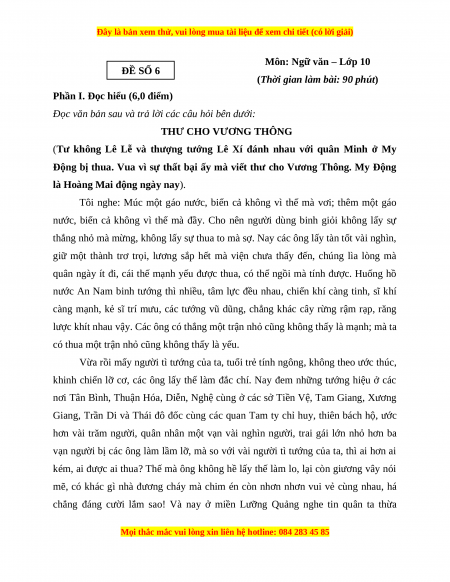 Môn: Ngữ văn – Lớp 10 ĐỀ SỐ 6