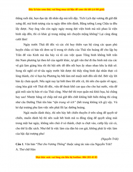 Đọc văn bản sau và trả lời các câu hỏi bên dưới: THƯ CHO VƯƠNG THÔNG