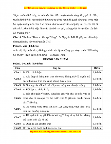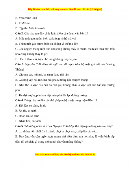 Câu 9. Phân tích nghệ thuật lập luận của Nguyễn Trãi ở đoạn văn bản sau. Và chỉ