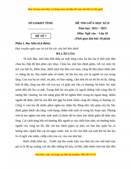 Môn: Ngữ văn – Lớp 10 ĐỀ SỐ 7