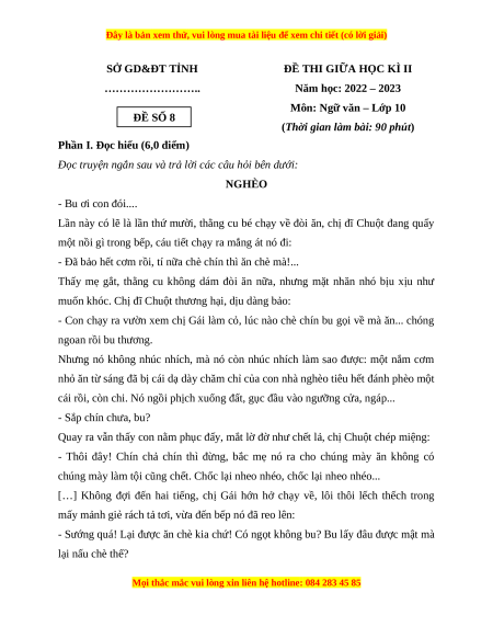 Môn: Ngữ văn – Lớp 10 ĐỀ SỐ 8