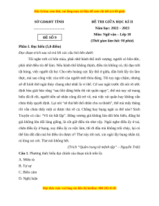 Phần I. Đọc hiểu (5,0 điểm) Câu Đáp án Điểm Câu 1 D. Nghị luận 0,5 điểm