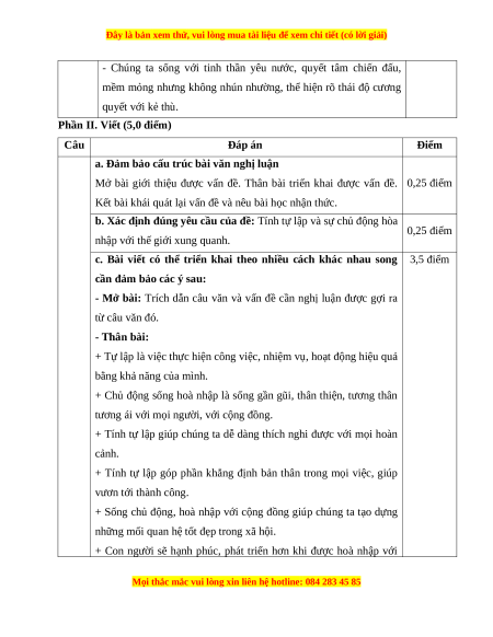 Phần II. Viết (5,0 điểm) Câu Đáp án Điểm