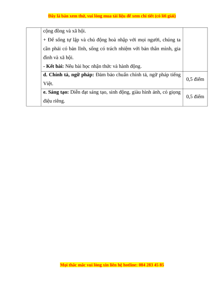 c. Bài viết có thể triển khai theo nhiều cách khác nhau song 3,5 điểm
