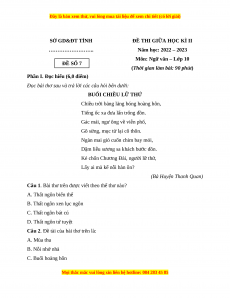 Câu 1. Bài thơ trên được viết theo thể thơ nào? A. Thất ngôn biến thể