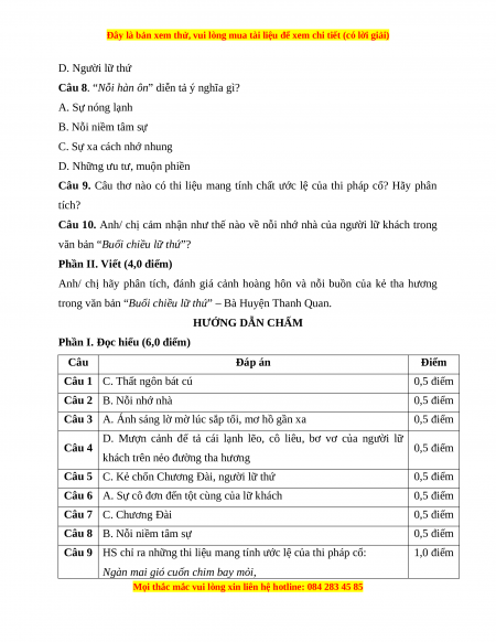 trong văn bản “Buổi chiều lữ thứ” – Bà Huyện Thanh Quan. HƯỚNG DẪN CHẤM