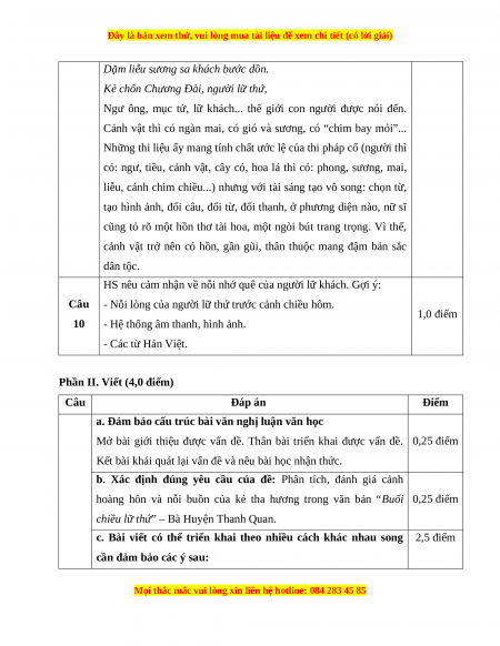 - Nỗi lòng của người lữ thứ trước cảnh chiều hôm. 1,0 điểm 10