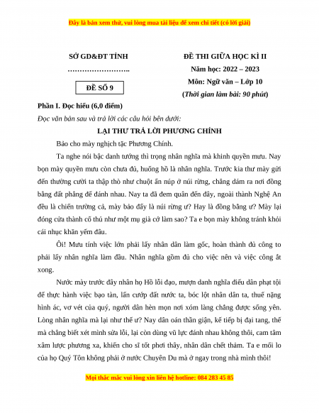 Môn: Ngữ văn – Lớp 10 ĐỀ SỐ 9