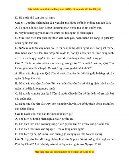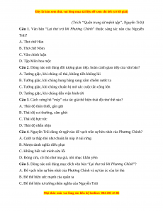 D. Thể hiện tội ác, sự sai trái của quân giặc và nguy cơ thất bại Câu 8 0,5 điểm của chúng