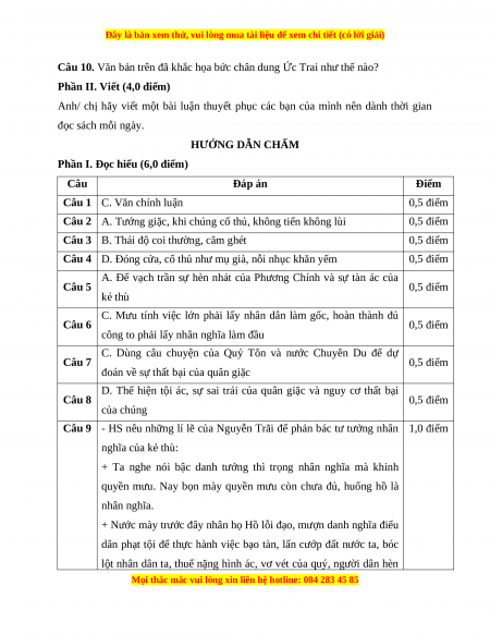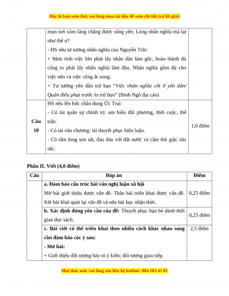 Câu 9 - HS nêu những lí lẽ của Nguyễn Trãi để phản bác tư tưởng nhân 1,0 điểm nghĩa của kẻ thù: