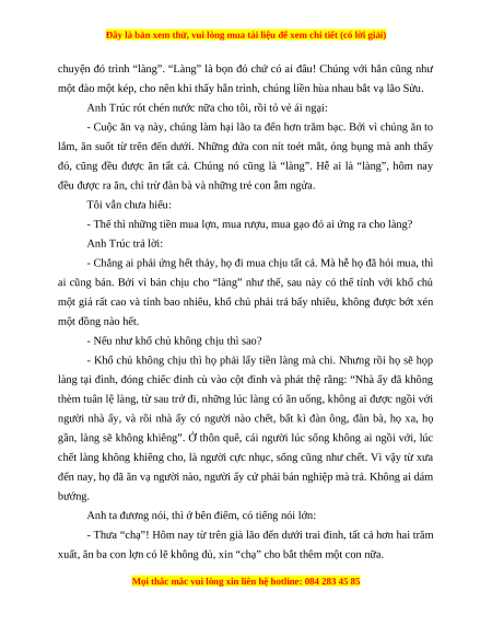 - Thế thì những tiền mua lợn, mua rượu, mua gạo đó ai ứng ra cho làng? Anh Trúc trả lời: