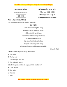 Câu 1. Bài thơ “Tự thán” thuộc thể thơ nào? A. Thơ tự do B. Thơ lục bát