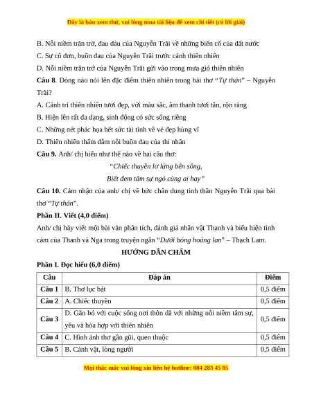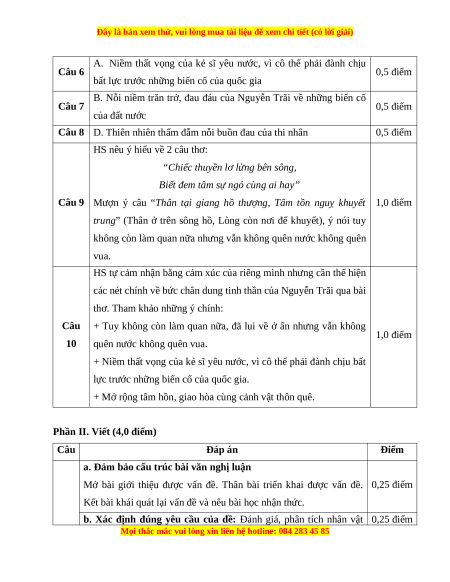 Câu 8 D. Thiên nhiên thấm đẫm nỗi buồn đau của thi nhân 0,5 điểm