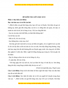 Câu 4 (2,0 điểm): Qua đoạn trích, em cảm nhận được nhân vật Sơn và chị Lan là