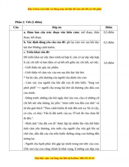 Phần 2: Viết (5 điểm) Câu Đáp án Điểm