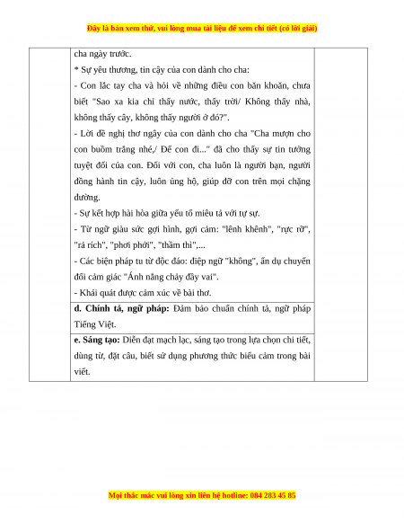 e. Sáng tạo: Diễn đạt mạch lạc, sáng tạo trong lựa chọn chi tiết,