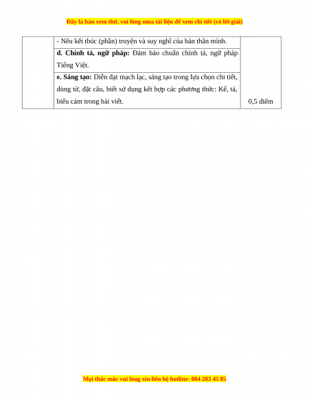 b. Xác định đúng yêu cầu của đề: nhập vai một nhân vật 0,5 điểm