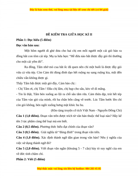 Phần 1: Đọc hiểu (5 điểm)