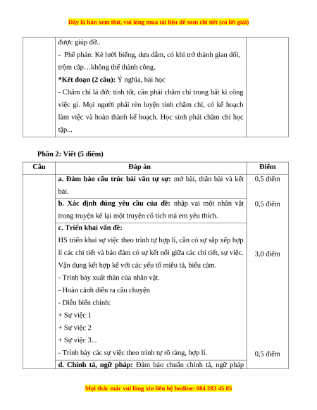 Phần 2: Viết (5 điểm) Câu Đáp án Điểm