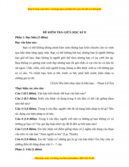 Phần 1: Đọc hiểu (5 điểm) Đọc văn bản sau: