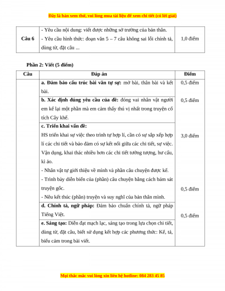 Phần 2: Viết (5 điểm) Câu Đáp án Điểm