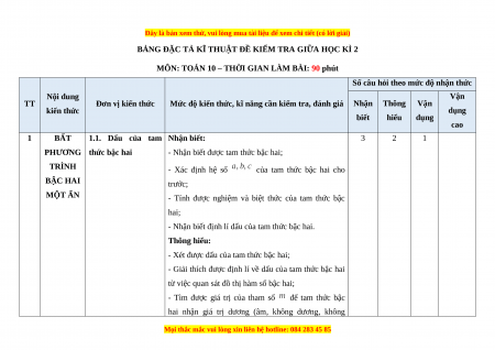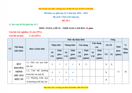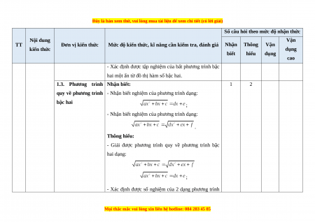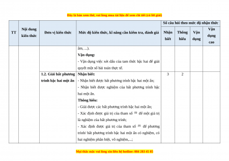 - Các câu hỏi ở cấp độ vận dụng và vận dụng cao là các câu hỏi tự luận.