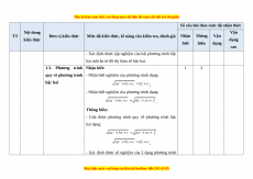 Đơn vị kiến thức tổng kiến thức Thời Thời Thời Thời gian Số Số Số Số điểm gian gian gian gian TN TL (phút) CH CH CH CH (phút) (phút) (phút) (phút) 1.1. Dấu của tam thức BẤT 3 3 2 4 1 10 5 1 bậc hai PHƯƠNG 1 TRÌNH 1.2. Giải bất phương 30 36 3 3 2 4 5 BẬC HAI trình bậc hai một ẩn 1.3. Phương trình quy MỘT ẨN 1 1 2 5 3 về phương trình bậc hai