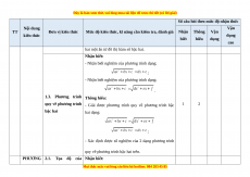Đơn vị kiến thức tổng kiến thức Thời Thời Thời Thời gian Số Số Số Số điểm gian gian gian gian TN TL (phút) CH CH CH CH (phút) (phút) (phút) (phút) 1.1. Dấu của tam thức BẤT 3 3 2 4 1 10 5 1 bậc hai PHƯƠNG 1 TRÌNH 1.2. Giải bất phương 30 36 3 3 2 4 5 BẬC HAI trình bậc hai một ẩn 1.3. Phương trình quy MỘT ẨN 1 1 2 5 3 về phương trình bậc hai PHƯƠNG 2.1. Tọa độ của vectơ 4 5 2 5 6