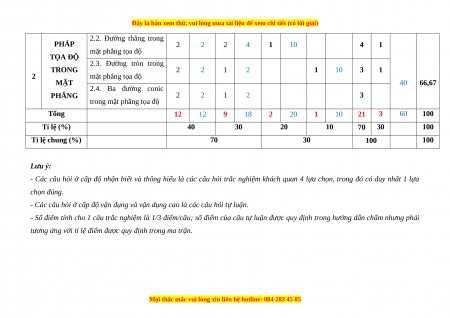 trong mặt phẳng tọa độ Tổng 12 12 9 18 2 20 1 10 21 3 60 100 Tỉ lệ (%) 40 30 20 10 70 30 100 Tỉ lệ chung (%) 70 30 100 100 Lưu ý: