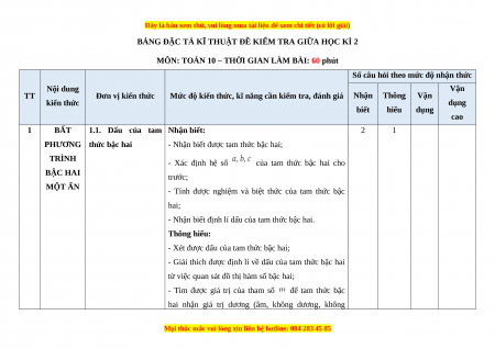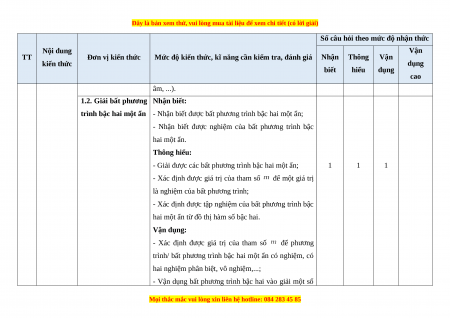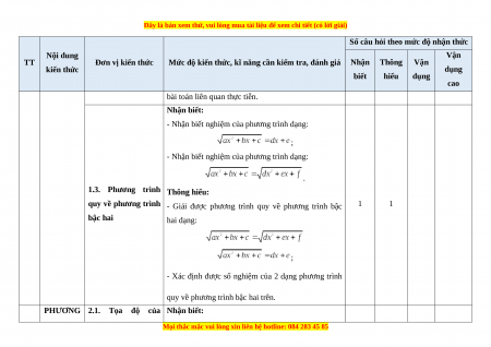 - Các câu hỏi ở cấp độ vận dụng và vận dụng cao là các câu hỏi tự luận.