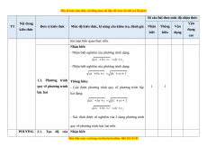 Đơn vị kiến thức tổng kiến thức Thời Thời Thời Thời gian Số Số Số Số điểm gian gian gian gian TN TL (phút) CH CH CH CH (phút) (phút) (phút) (phút) 1.1. Dấu của tam thức BẤT 2 2 1 2 3 bậc hai PHƯƠNG 1 TRÌNH 1.2. Giải bất phương 20 33,33 1 1 1 2 1 10 2 1 BẬC HAI trình bậc hai một ẩn 1.3. Phương trình quy MỘT ẨN 1 1 1 2 2 về phương trình bậc hai PHƯƠNG 2.1. Tọa độ của vectơ 2 2 2 4 4