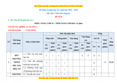 Bộ sách: Chân trời sáng tạo ĐỀ SỐ 8