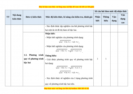 - Các câu hỏi ở cấp độ vận dụng và vận dụng cao là các câu hỏi tự luận.